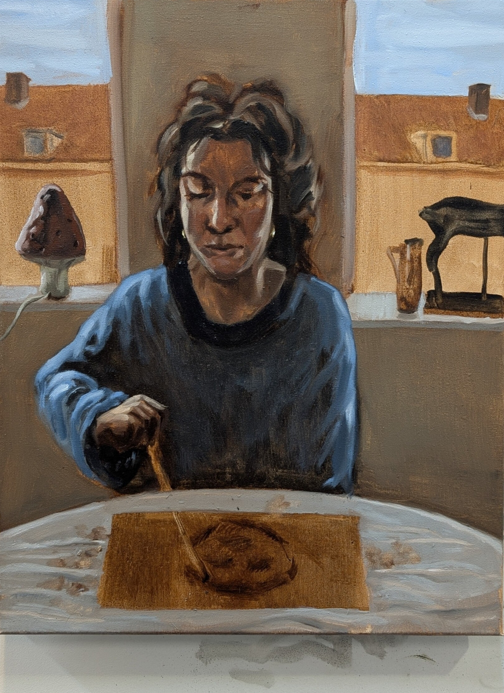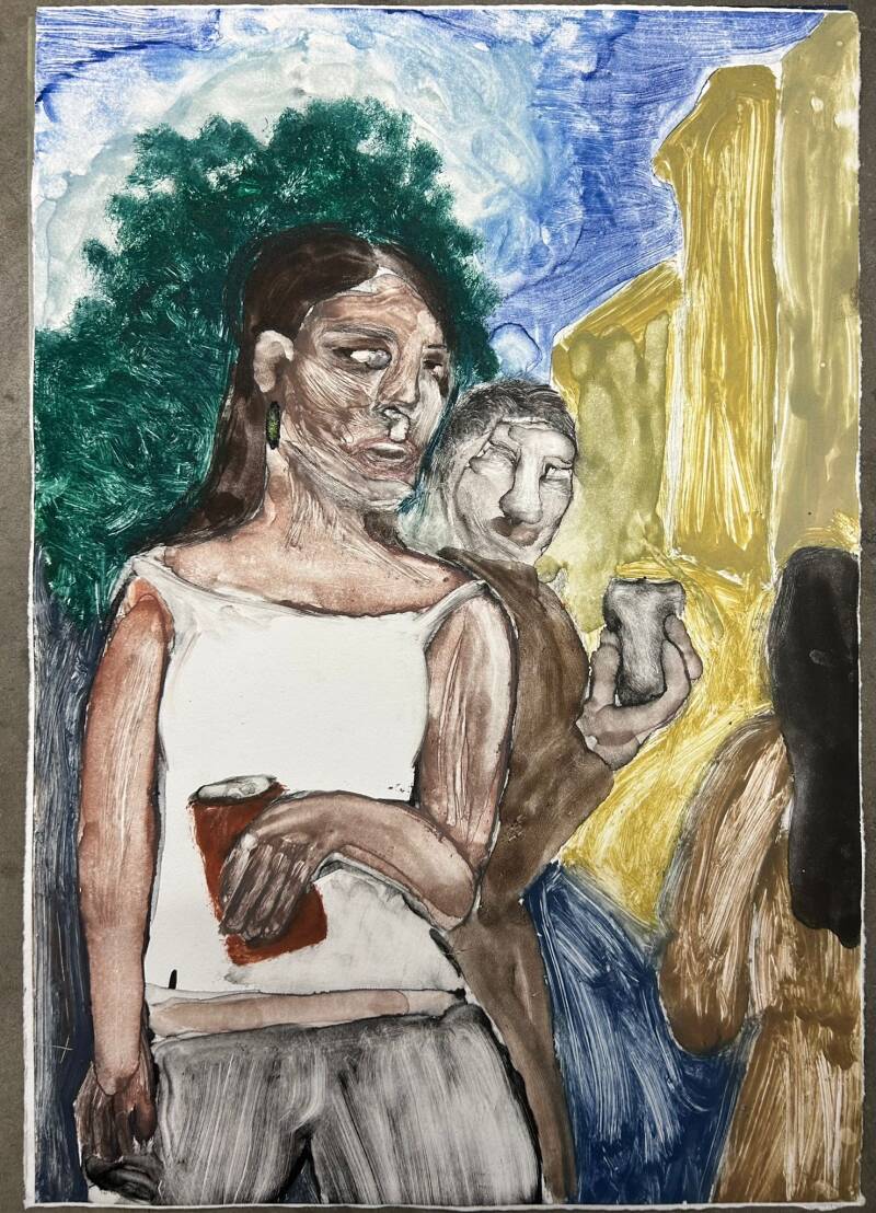 The works center on the human figure and inner states, touching on existential questions, responsibility, and the complexity of being alive today. In the collaborative paintings, we paint each other live and simultaneously, blurring the roles of subject and observer. This process resonates with Lacan’s ideas of the Other, where identity is shaped through relation, gaze, and encounter.